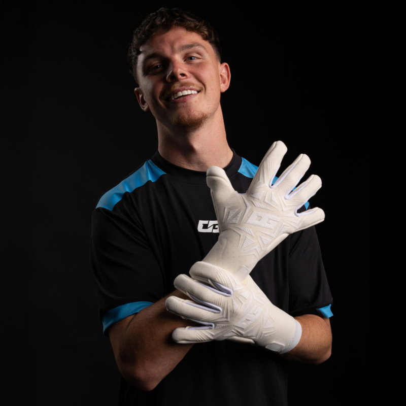 The One Glove OG1 Vision HYL SL, OG1 Vision goalkeeper gloves, strapless goalkeeper gloves, Hyla SL cut, professional goalkeeper gloves, lightweight goalkeeper gloves, whiteout goalkeeper gloves, The One Glove Contra Pack, Premier League goalkeeper gloves, EA SPORTS FC gloves, Jeugdkeeper.nl goalkeeper gloves
